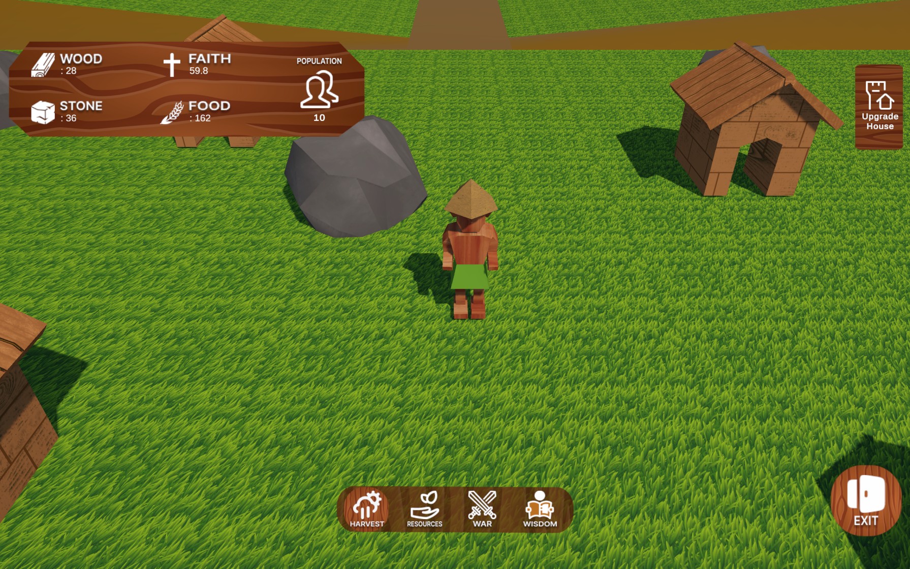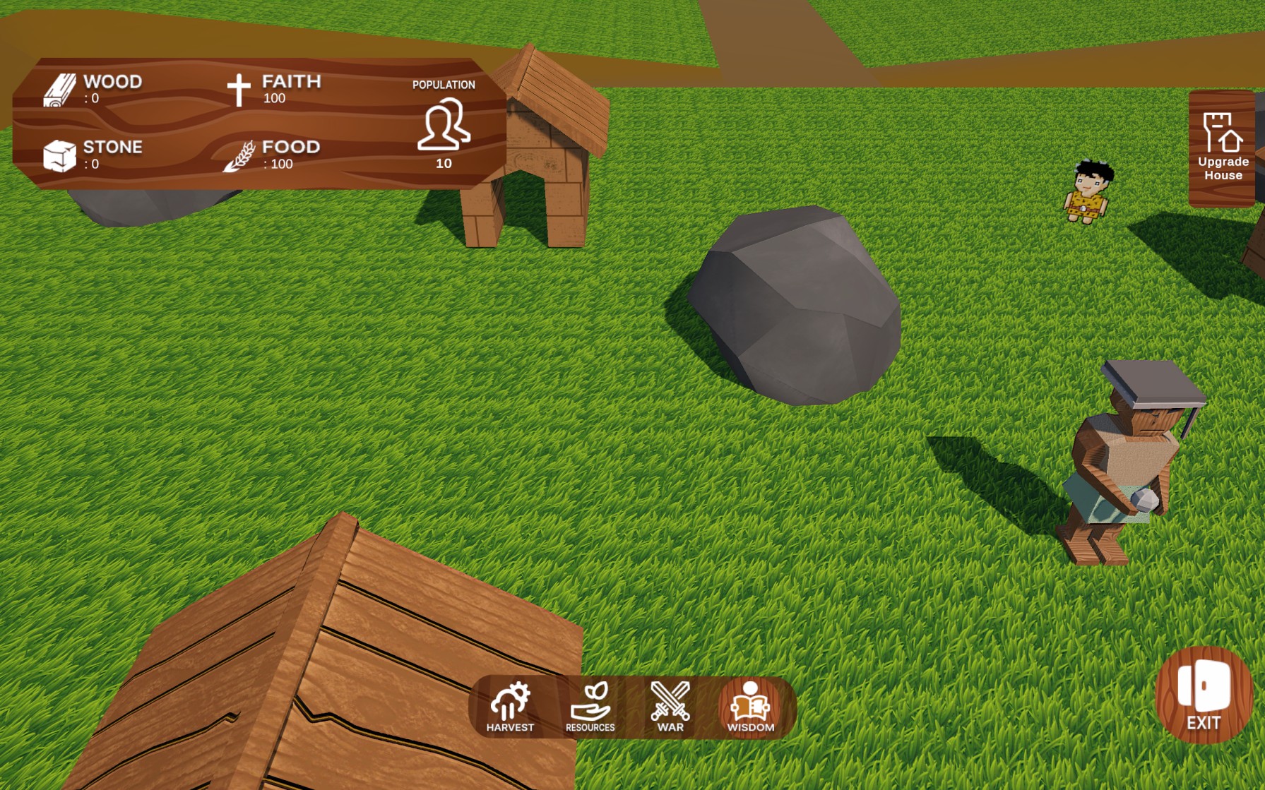Your goal is to nurture this small tribe, manage their resources, and guide them to advance their civilization. Their ultimate achievement—and your path to victory—is to help them upgrade their central home to its final form.